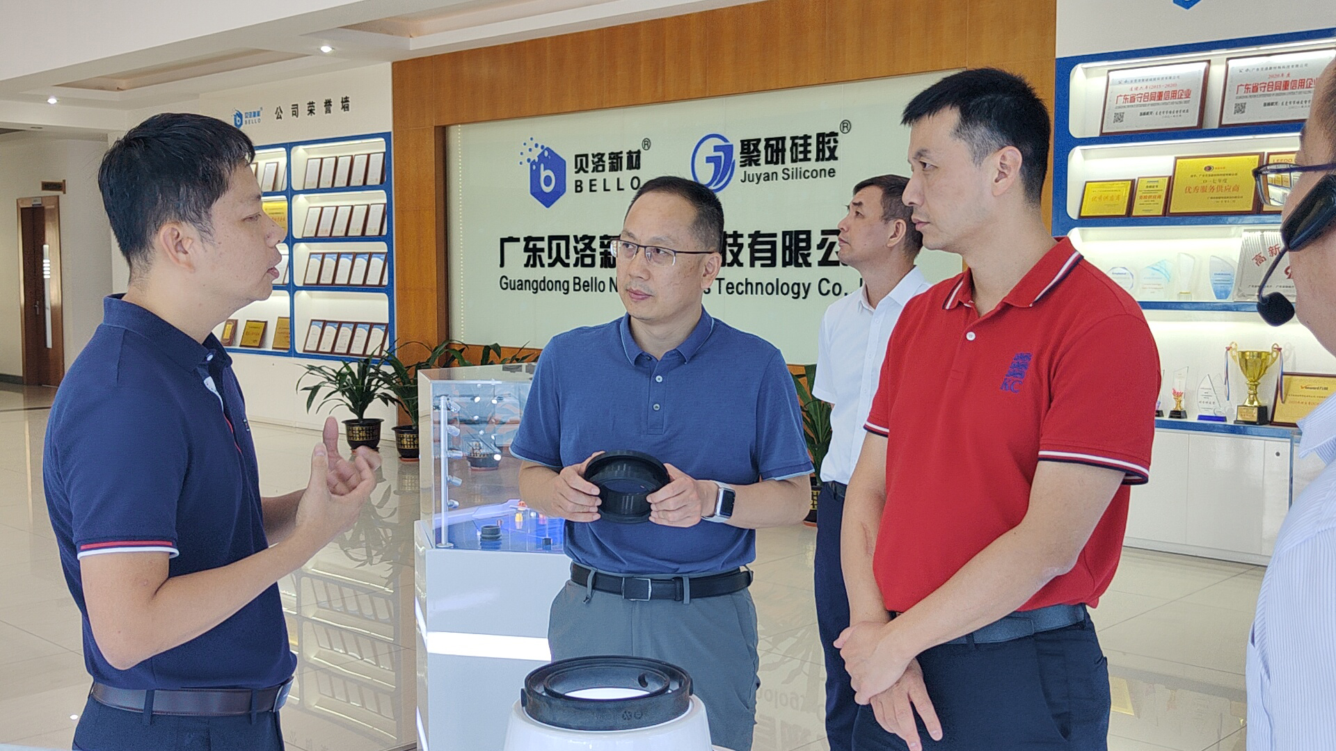 貝洛新材企業(yè)代表為領(lǐng)導(dǎo)一行介紹了企業(yè)展廳。走進(jìn)展廳,映入眼簾的是貝洛新材聚焦的4大領(lǐng)域 - 汽配、連接器、廚衛(wèi)電器及新能源領(lǐng)域千余款產(chǎn)品,企業(yè)代表對每個領(lǐng)域的技術(shù)特點(diǎn)以及功能參數(shù)進(jìn)行了介紹,其中重點(diǎn)介紹了貝洛新材生產(chǎn)的燃?xì)鉄崴鬟M(jìn)出水閥密封件和輪胎壓力監(jiān)測系統(tǒng)密封件產(chǎn)品的研產(chǎn)優(yōu)勢,并闡明對新能源汽車及工業(yè)連接器密封件領(lǐng)域的階段性成果和未來目標(biāo)。
