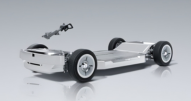 滑板底盤的概念是通用汽車在2002年提出的。滑板底盤是一種新時代的非承載車身結(jié)構(gòu),可實現(xiàn)車身和底盤的完全分離,車的動力總成、線控制動、線控轉(zhuǎn)向、懸架、三電模塊等全部集成在一個像滑板一樣的底盤上。簡單地理解,上身車殼可以隨意更換,甚至不用蓋車殼,車子也能跑起來。