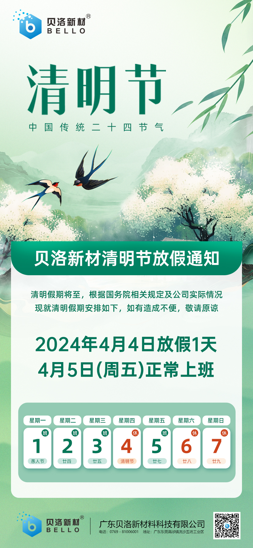 貝洛新材清明放假通知