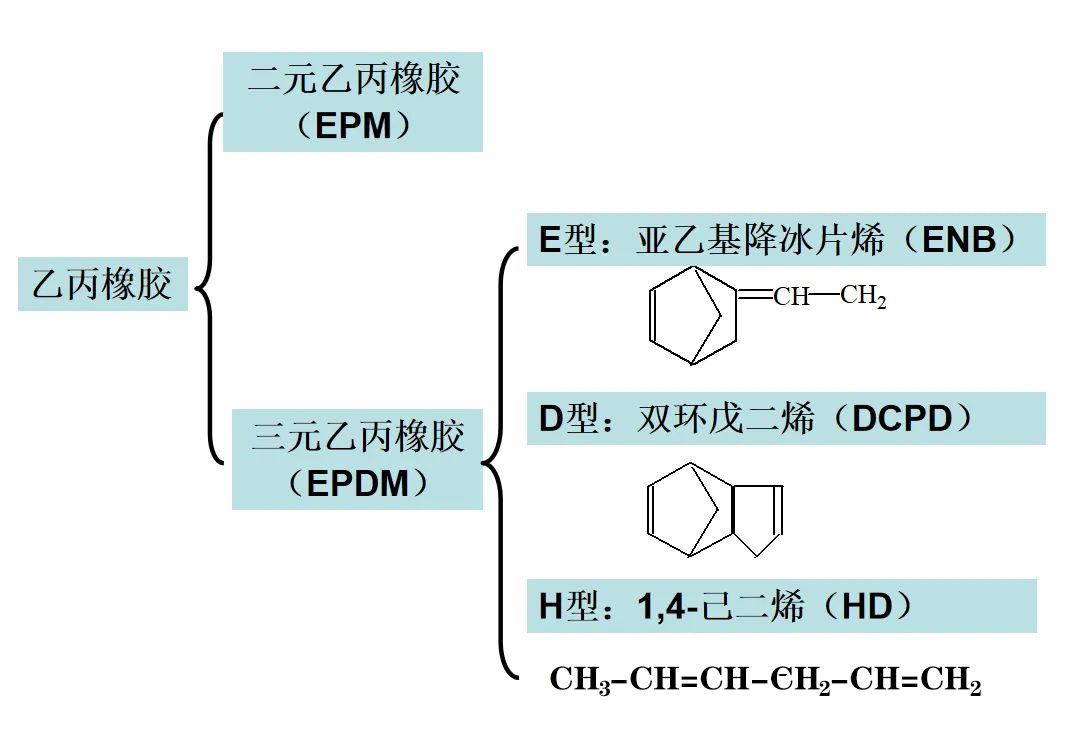 乙丙橡膠家族主要包括兩大成員:二元乙丙橡膠(EPM)與三元乙丙橡膠(EPDM)。