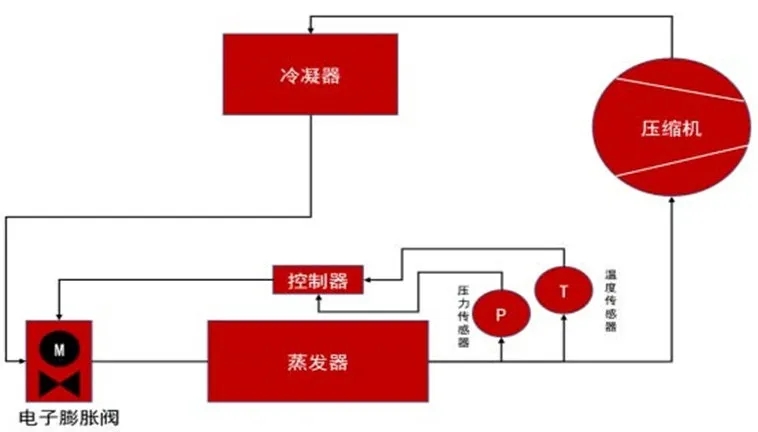 電子膨脹閥采用“傳感器+電機(jī)+控制器”的電氣傳動方案,通過實(shí)時監(jiān)測并調(diào)整蒸發(fā)器出口的壓力與過熱度,實(shí)現(xiàn)制冷劑流量的精確控制。