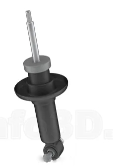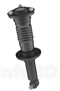減震器的安裝,上支柱支座是由橡膠襯墊連接的,同時(shí)由于其底部需要隨控制臂旋轉(zhuǎn)(麥弗遜式懸架),所以中間有個(gè)支柱軸承。