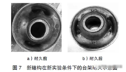 為驗證新設(shè)計的有效性,團(tuán)隊在實驗室MTS多通道試驗臺架上進(jìn)行了耐久疲勞試驗。結(jié)果顯示,新結(jié)構(gòu)襯套在V2方向交變60萬次、V1方向交變13萬次后,均未出現(xiàn)裂紋,證明了其疲勞耐久性能的顯著提升。