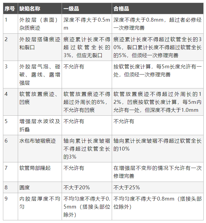 注:本表第5、6項(xiàng)不適用于吸引類橡膠軟管。