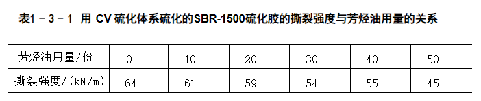 增塑體系同樣對(duì)撕裂強(qiáng)度有所影響。一般而言,軟化劑的添加會(huì)降低硫化膠的撕裂強(qiáng)度。特別地,石蠟油對(duì)SBR硫化膠的撕裂強(qiáng)度尤為不利,而芳烴油則能在一定程度上提高SBR硫化膠的撕裂強(qiáng)度。隨著芳烴油用量的增加,撕裂強(qiáng)度的變化呈現(xiàn)出一定的規(guī)律性,具體如表1-3-1所示。密封條橡膠硅膠材料