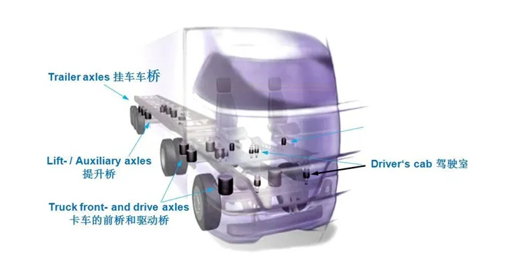• 空氣彈簧:剛度可調(diào),適配不同載荷。