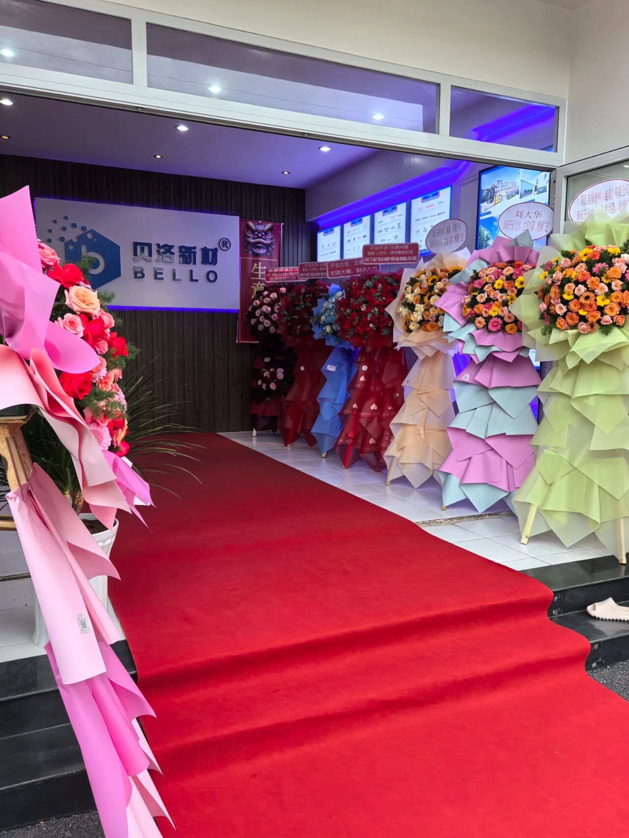 開業(yè)慶典儀式開始前,花籃錦簇,眾多的花籃也是代表著兄弟公司與合作伙伴對貝洛的美好祝福,現(xiàn)場洋溢著喜慶的氛圍。