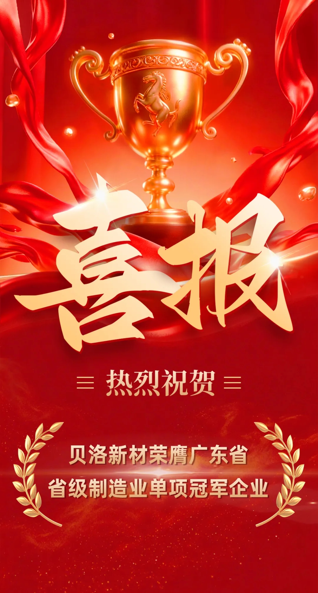 2025年12月31日,廣東省工業(yè)和信息化廳發(fā)布了《2025年廣東省省級制造業(yè)單項冠軍企業(yè)及第一批復(fù)核企業(yè)通過名單的公示》,廣東貝洛新材料科技有限公司成功入選省級制造業(yè)單項冠軍企業(yè)。