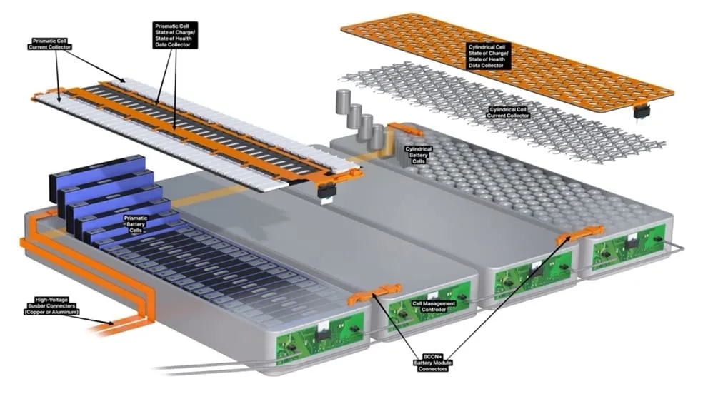 取消模組、將電池單體直接集成至電池包,消除了模組壁的占用,從而釋放出更多電池包內(nèi)部空間。TE Connectivity 電動(dòng)出行產(chǎn)品經(jīng)理 Boris Ketscher 指出:“這一變化提升了電池包的能量密度,成為降低成本的主要手段。”新一代電池采用一體化封裝設(shè)計(jì),而非過(guò)去的獨(dú)立模組結(jié)構(gòu)。