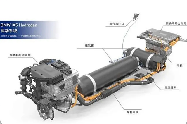 新車創(chuàng)新性地搭載寶馬氫燃料電池技術(shù)與第五代BMW eDrive電力驅(qū)動技術(shù),整套動力系統(tǒng)由兩個儲氫罐、一個燃料電池和后軸電機構(gòu)成。