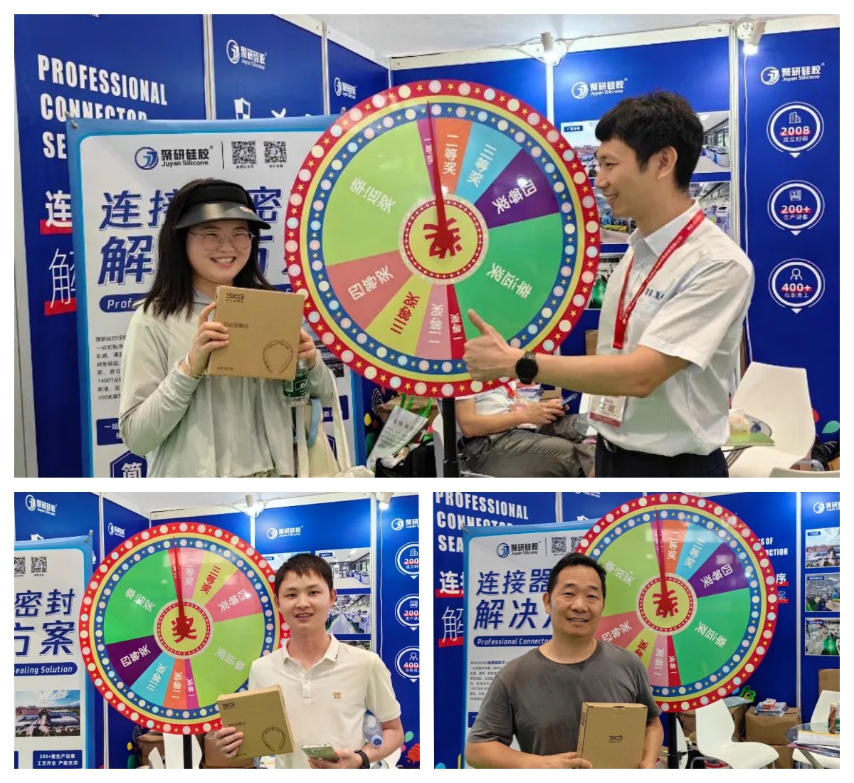 與此同時(shí),聚研硅膠憑借著對(duì)連接器一站式解決方案服務(wù)的過(guò)硬實(shí)力,征服了行業(yè)一眾合作伙伴,各知名企業(yè)對(duì)與聚研的充滿信心,紛紛踴躍交換信息,尋求合作并參與到現(xiàn)場(chǎng)的抽獎(jiǎng)活動(dòng)中。