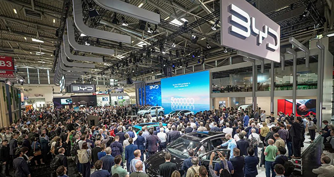 比亞迪攜海豹、宋PLUS EV冠軍版、元PLUS(海外命名為BYD ATTO 3)、海豚、漢以及騰勢(shì)D9亮相IAA。
